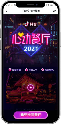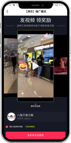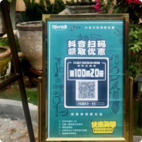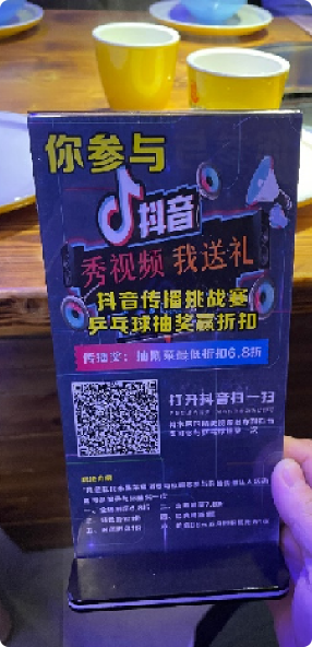 引导新老顾客用抖音无感扫码并发送视频,推送至社交圈